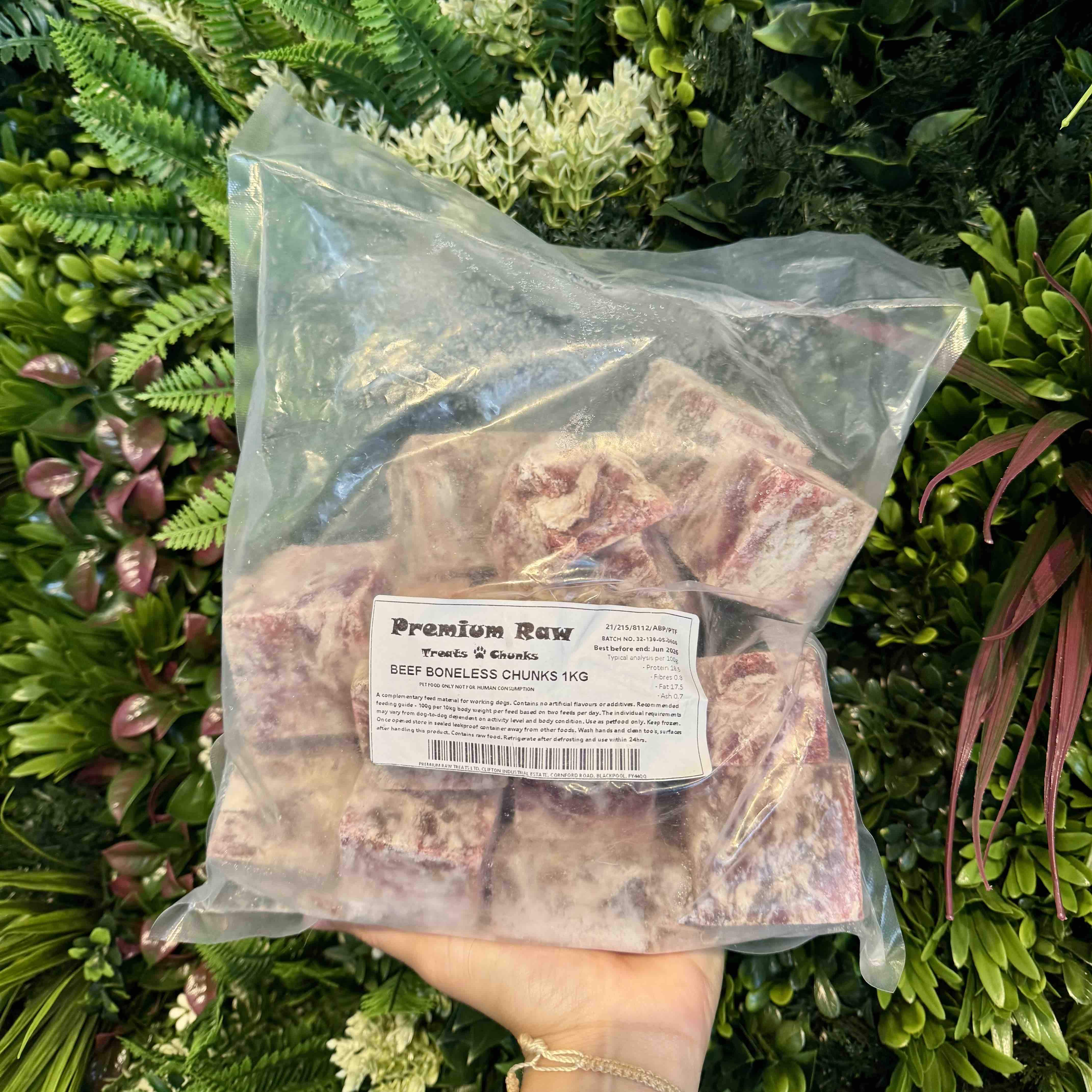 100% natural raw beef chunks, boneless