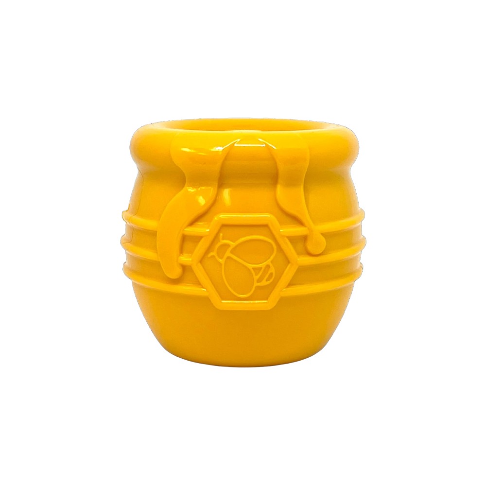 Inspired by the humble bumble bee, this honey pot treat dispenser completes the honey-themed collection alongside honeycomb mats and honey stick chew bones. Made from durable, vibrant PUP-X polymer, this floating toy can be filled with a variety of treats and even frozen to increase the challenge. Perfect for slowing down speedy eaters, reducing boredom, and easing separation anxiety and it’s veterinarian-approved.