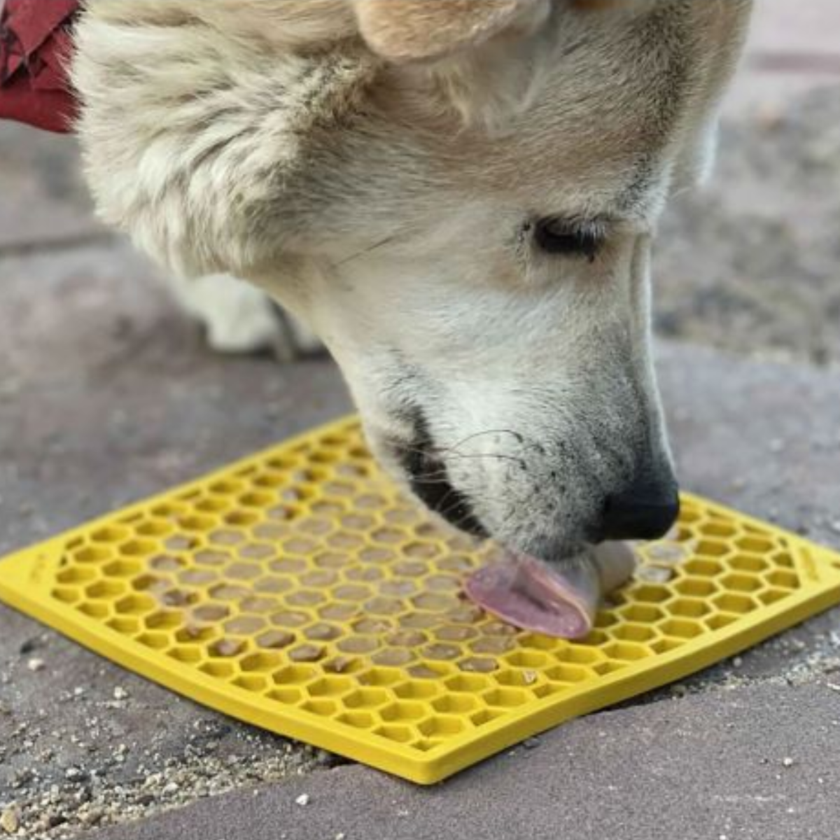 Licking naturally soothes and calms your dog. Simply spread your pet’s favorite soft treat (like peanut butter, yogurt, or wet food) across the surface of the mat, making sure to press it into the grooves for extended enjoyment.
