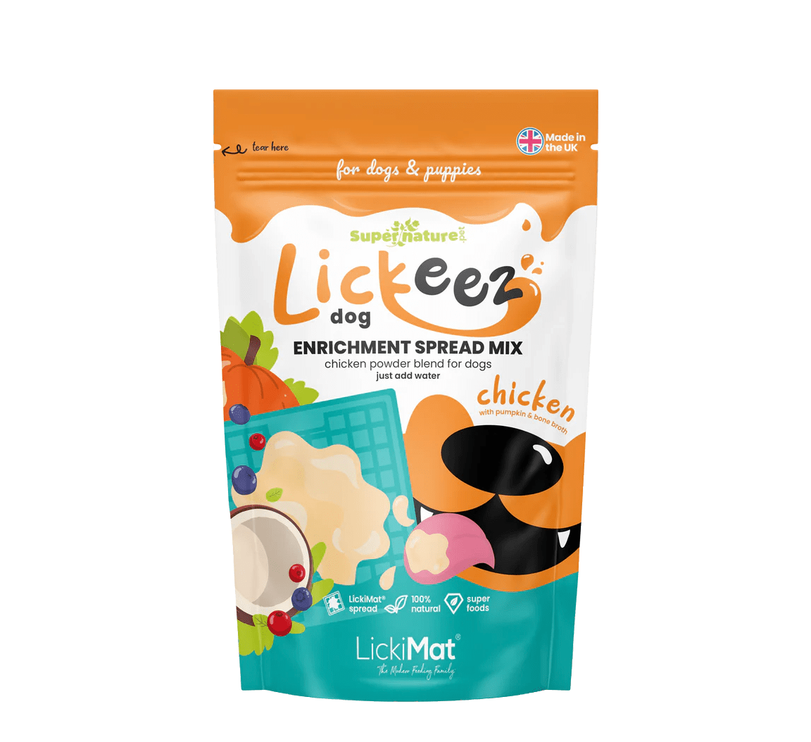 Looking for healthy enrichment ideas for dogs? The Supernature Pet and LickiMat® co-branded Lickeez Chicken & Superfood Spread Mix is the perfect solution! This tasty and nutritious enrichment spread mix is specially designed for licking mats and other slow feeders, keeping your dog entertained while providing essential nutrients.