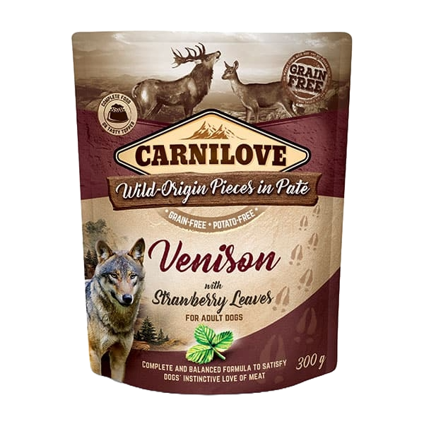 Highly digestible venison supports muscle development and is low in calories and cholesterol, benefiting digestive and heart health. Strawberry leaf acts as an antioxidant, protecting cells from oxidative stress and helping reduce cholesterol levels to support skin, heart, and circulatory system health. Ideal as a complete meal or a delicious topper for Carnilove kibble.