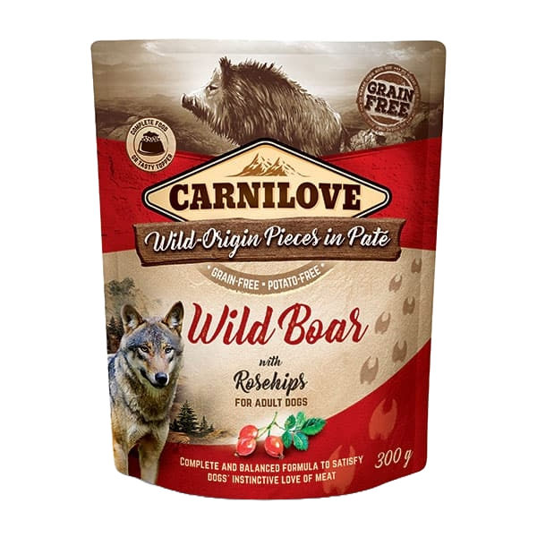 Wild boar is highly digestible and naturally low in fat and cholesterol, promoting lean muscle development and supporting heart and circulatory health. Rosehip adds natural anti-inflammatory and antioxidant benefits, helping to regulate blood glucose levels while supporting digestion, skin, and cardiovascular wellness. Serve alone or as a tasty topper for Carnilove kibble.