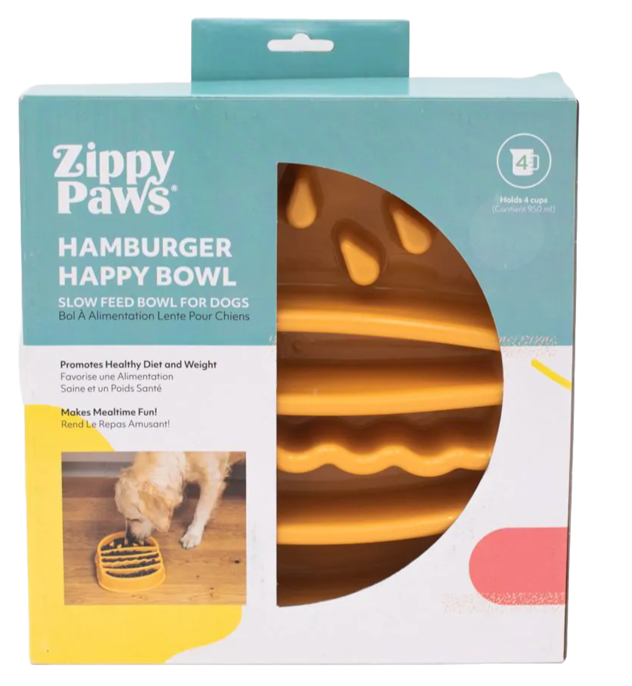 Make mealtime fun for your eager eater with the ZippyPaws Happy Bowl Hamburger slow feed bowl! The raised design allows your dog to eat up to 10 times slower, helping to prevent bloating, belching and choking – promoting a healthy diet and weight.