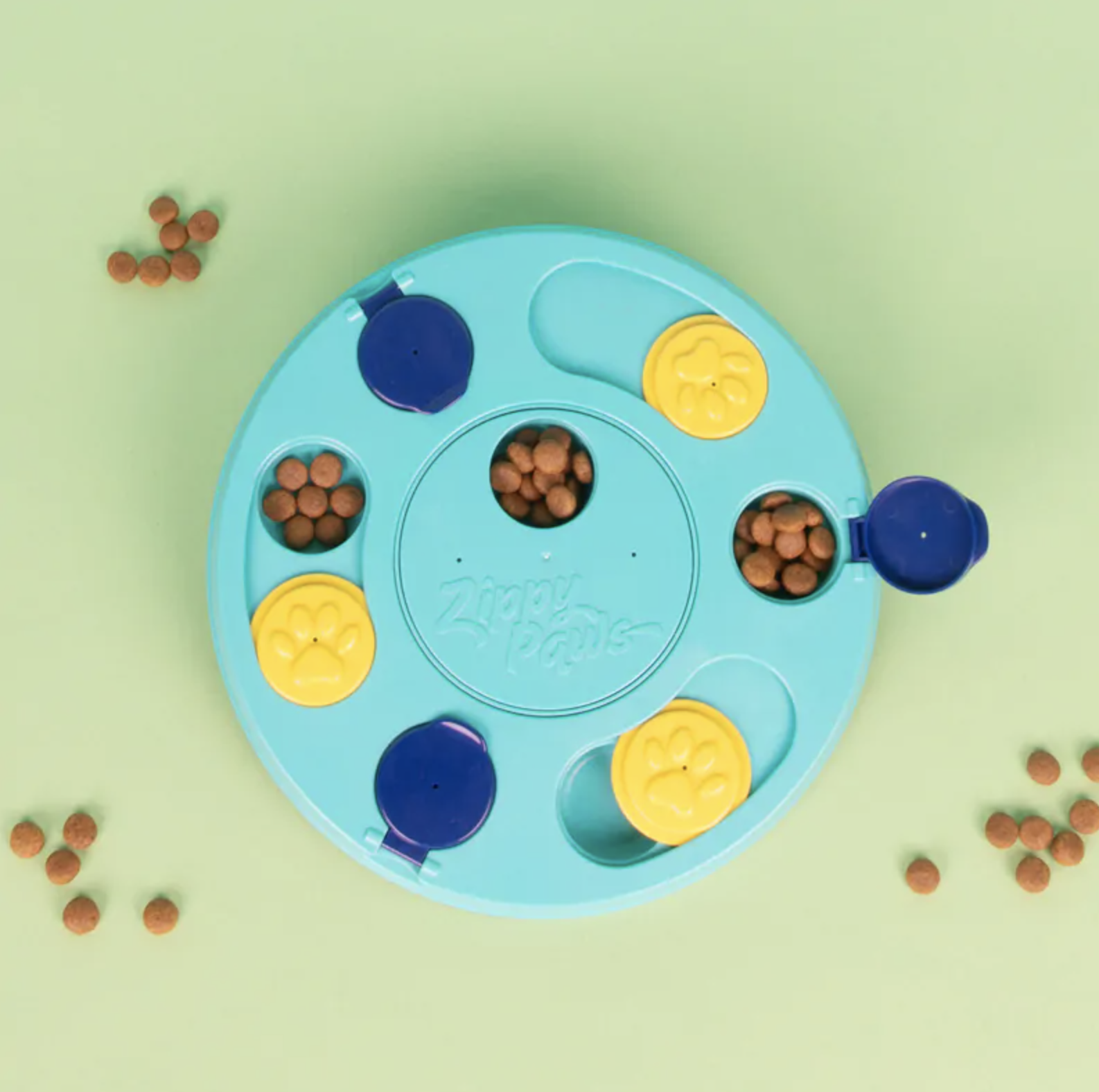 This interactive toy from ZippyPaws teaches dogs problem-solving skills for a fun and engaging way to receive treats! The 3-in-1 game features different levels of difficulty that entertain and reduce boredom while teaching your pup problem-solving skills. Non-slip base to prevent sliding.